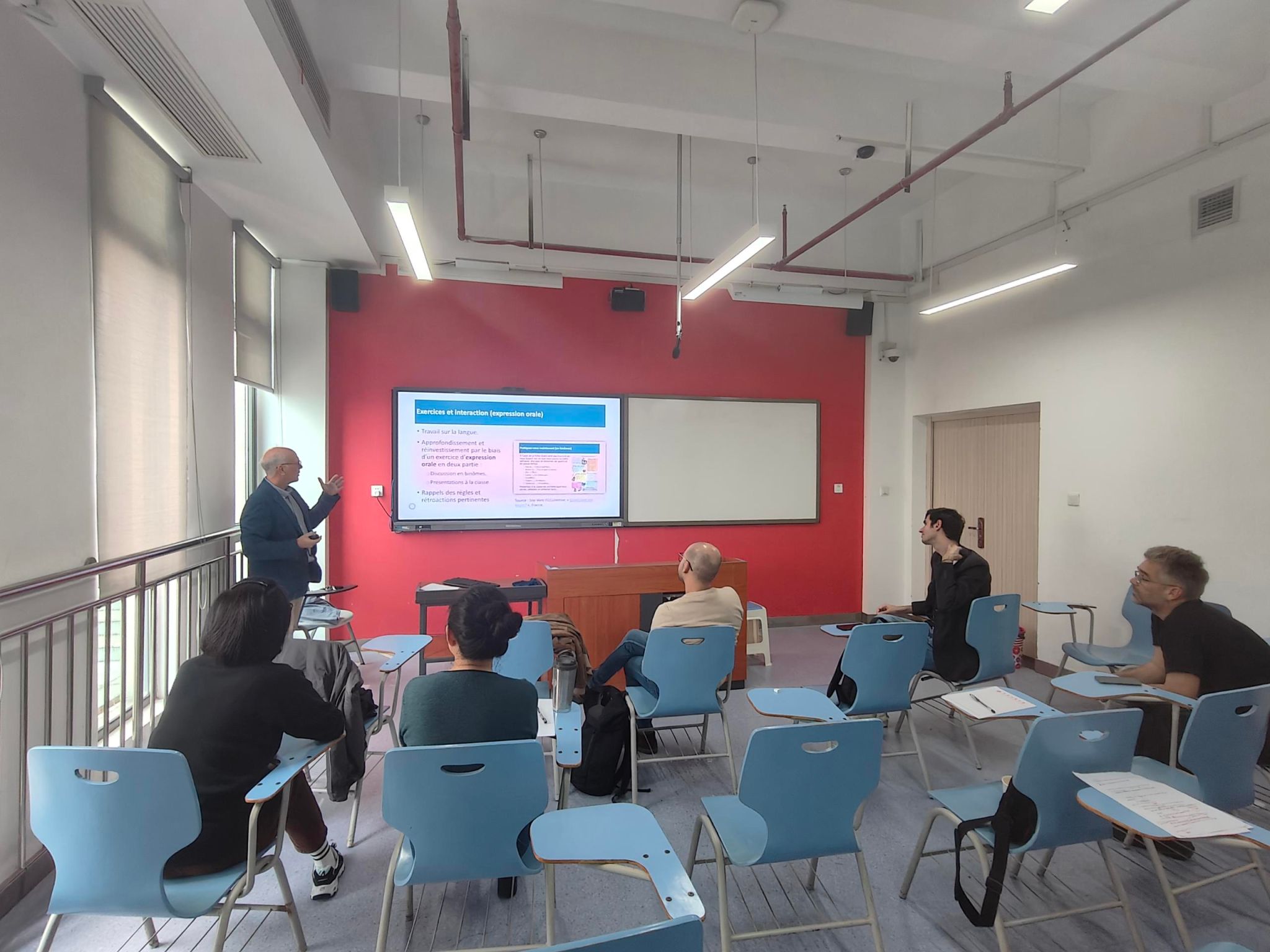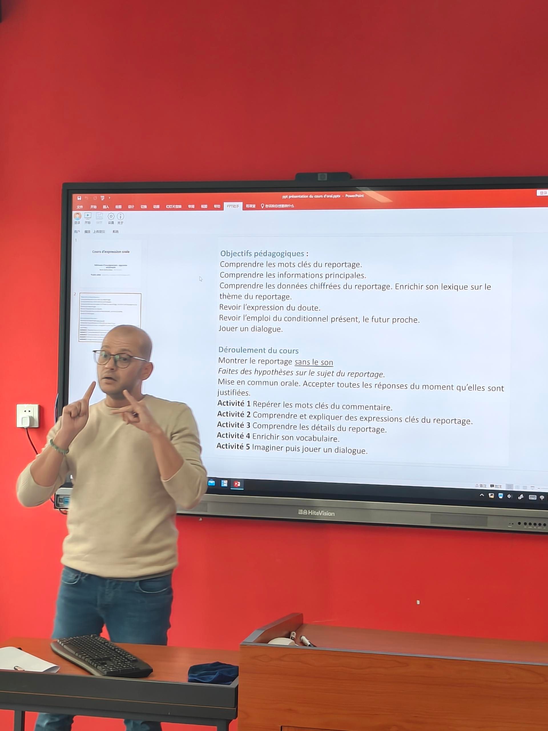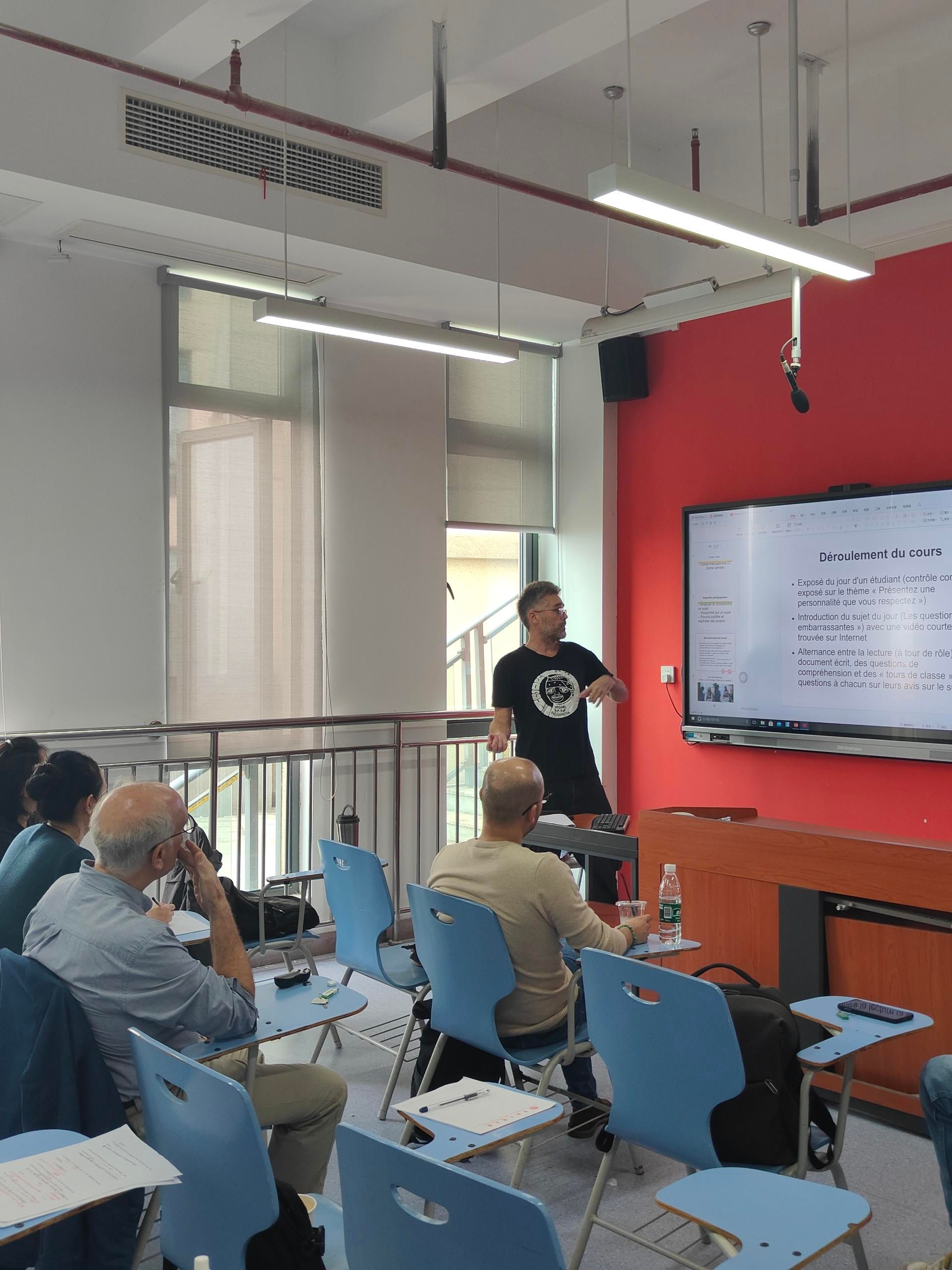 9728太阳集团法语语言中心,2024年10月30日——在这个金色的秋日,12603教室里洋溢着知识的热情和求知的渴望。我中心举办了一场别开生面的外教磨课活动,旨在提升外教们的课堂教学质量,促进教学经验的分享与交流。