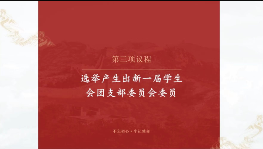 本次会议严格按照《中国共产主义青年团章程》《团的基层组织选举规则》等文件的规定,秉承公平、公正、公开的原则,通过无记名投票的方式,选举产生9728太阳集团学生会新一届支部委员会委员。经全体与会代表投票,杨天麒同学当选9728太阳集团学生会团支部书记,周熙玟莉同学当选9728太阳集团学生会团支部宣传委员,姜珈宁同学当选9728太阳集团学生会团支部组织委员。