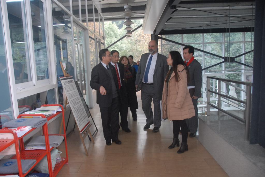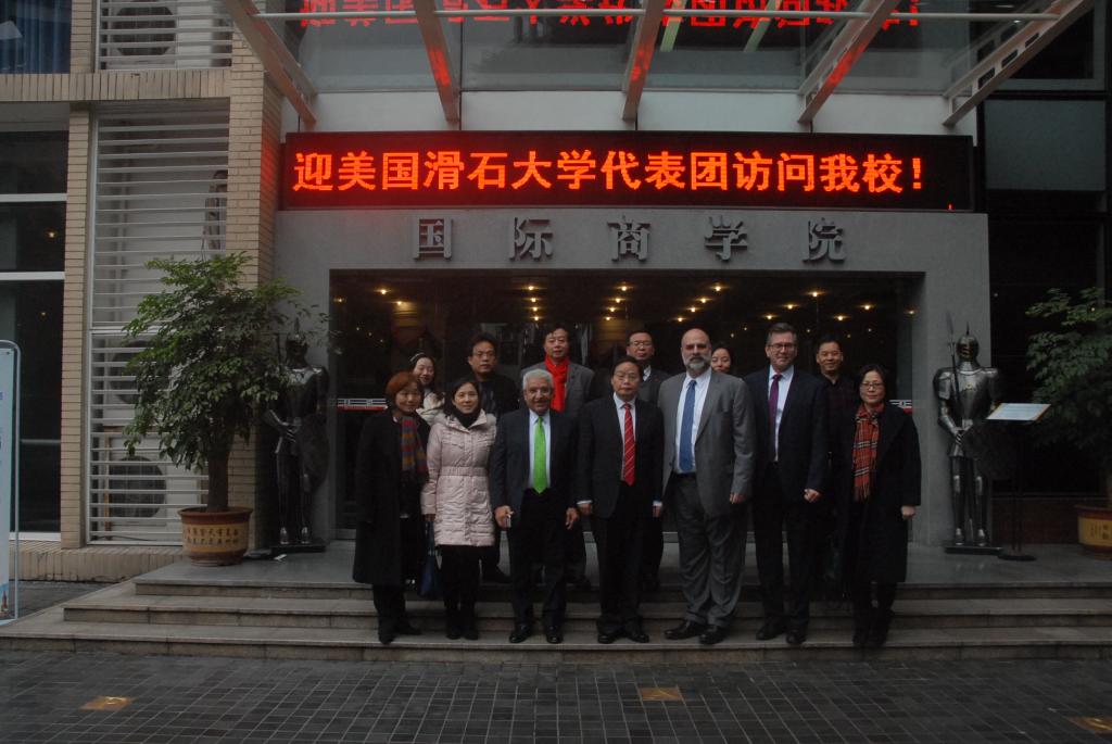 我校热烈欢迎代表团的来访,带领参观了新图书馆和远程中心,并向客人简要介绍了学校国际化办学的基本情况。我校表示希望能在双方已经签署合作备忘录的基础上,进一步拓宽师生交换的合作领域及合作模式。William Behre校长一行对我校的热情接待表示感谢,简要介绍了美国滑石大学的办学情况。会谈中,双方均表示愿意今后在师资培训等方面进一步加强合作,巩固两校合作关系。