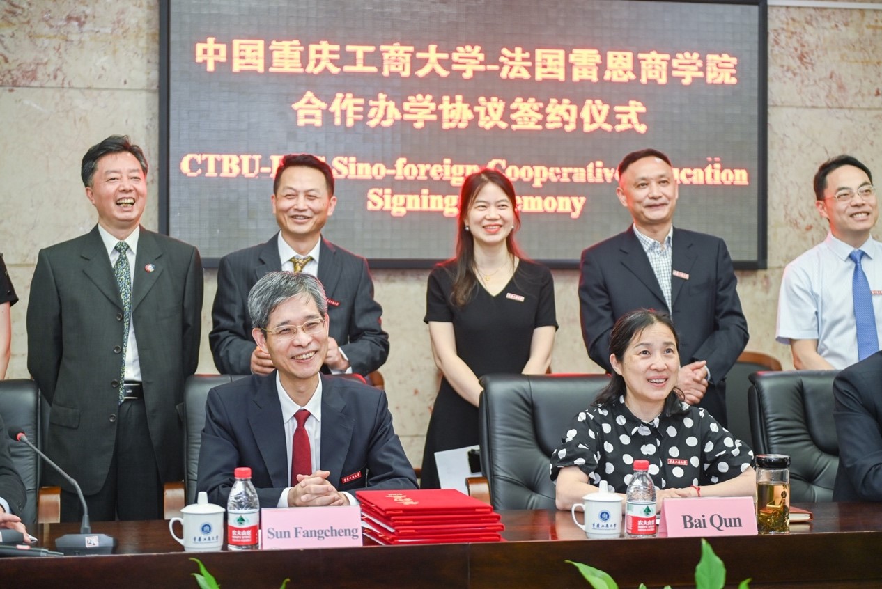 校长孙芳城在致辞中讲到,6月18日是重庆市成为直辖市的纪念日,也是太阳集团官网tyc9728建校70周年的纪念日,和雷恩商学院签署合作协议在两校各自的发展历程中是一个里程碑性事件,对9728太阳集团提升办学层次、进一步扩大品牌影响力具有重要意义,并预祝雷恩商学院与太阳集团官网tyc9728的合作取得成功,将9728太阳集团办成中法人文领域友好合作的一个标杆!