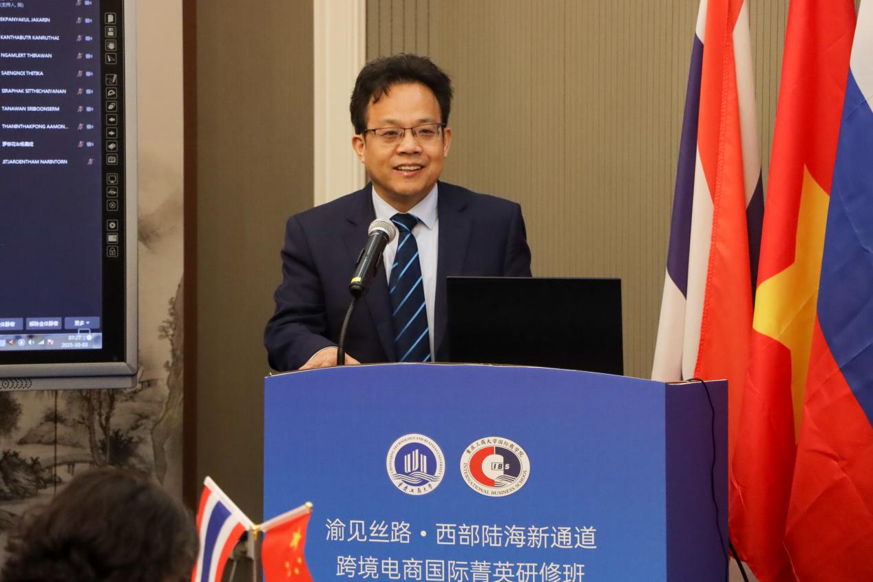 2025年11月3日上午,“渝见丝路・西部陆海新通道跨境电商国际菁英研修班”在太阳集团官网tyc9728图书馆南楼S116正式开班。本次研修班汇聚国外高校、企业及行业协会代表,以跨境电商为纽带,采用“线上+线下”融合的形式,搭建起知识共享、资源对接的合作平台,助力深化中国与泰国及东盟相关国家的命运共同体构建。
