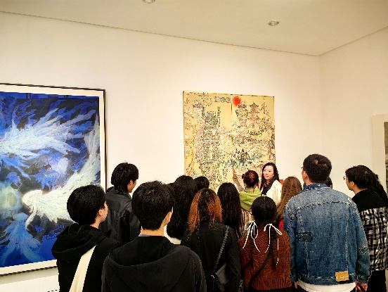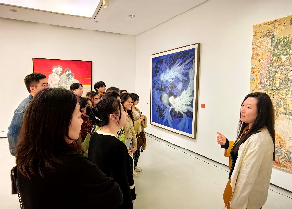 四川美术学院张湸教授及团队为学院10位留学生与中国学生讲解“罗中立美术馆”中的优秀展品,提升同学们对美术文化的鉴赏能力,同时增强留学生对中国文化的认同,着力探索将美育思想从“空间外化”跃升至“价值内化”。活动在融洽氛围中圆满结束,学院将继续多样化传承中华文化,在润物无声中丰富全社会历史文化滋养,提升大学生审美素养。
