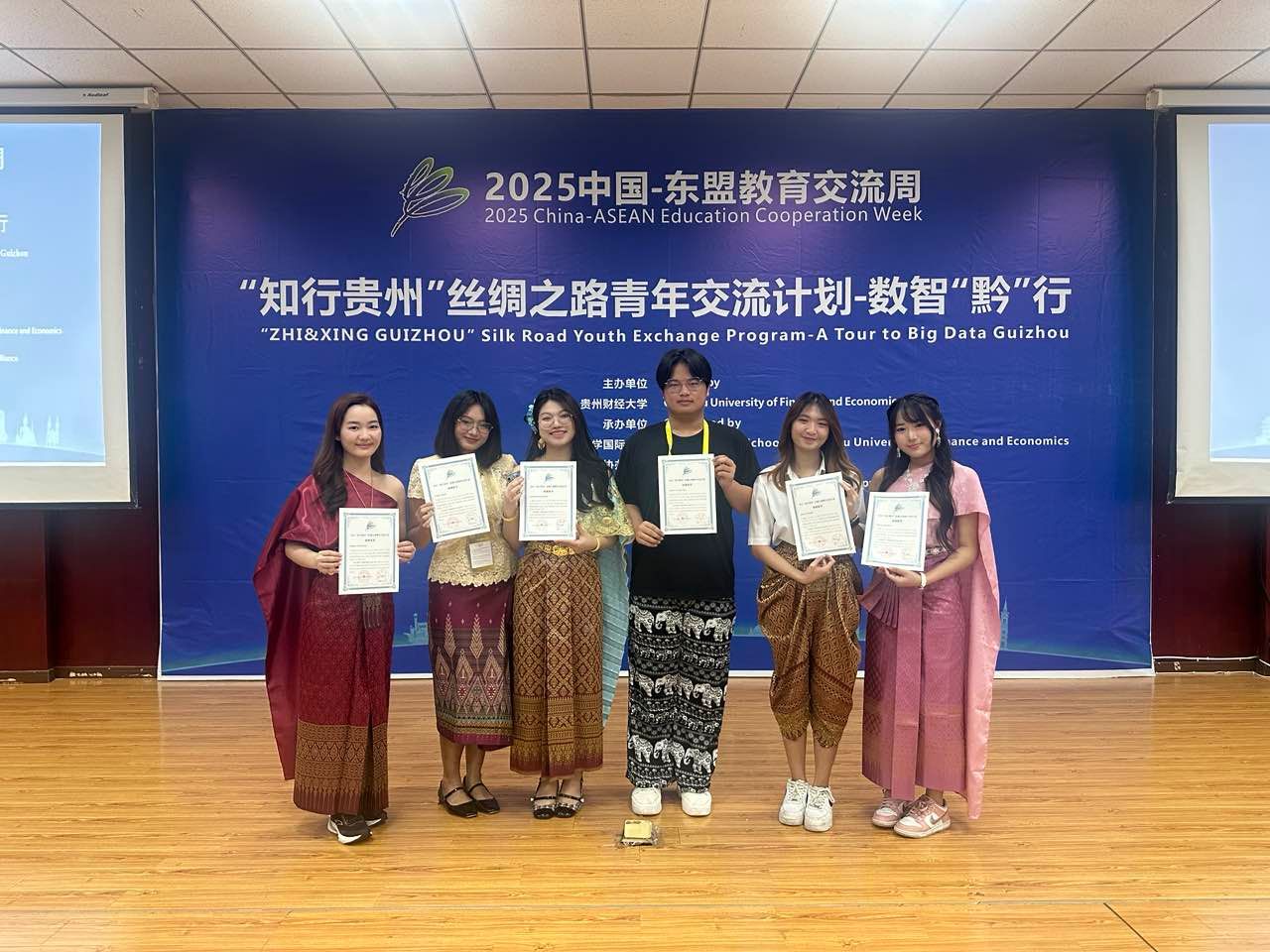 2025年6月23日,我院中泰2+2的6名学生参加由贵州财经大学主办、全球电商发展教育联盟协办的2025中国-东盟教育交流周“知行贵州”丝绸之路青年交流计划。该活动邀请了太阳集团官网tyc9728、重庆师范大学、四川外国语大学来自俄罗斯、泰国、日本、斯里兰卡、越南的12名留学生参加。