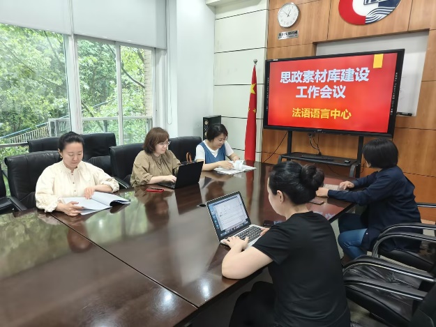 在会上,中心主任饶敏对法语语言中心目前课程思政的情况作了简单的通报,并提出了继续完善和建设思政素材库的要求,大家首先对法语语言中心现有的思政素材库内容进行浏览和分析,指出需要完善和补充的内容;参加会议的各位老师针对思政素材库的补充和新增内容,素材库的建设方式,建设标准等进行了热烈讨论,提出了很多有建设性的意见;最后大家还对思政素材库的使用方式进行了模拟和实验,从中获得了法语语言中心课程思政工作开展的启迪和灵感。