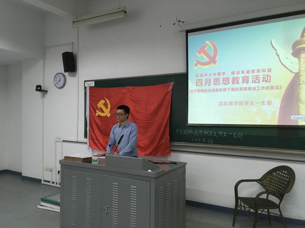 2017年4月,为完成我院学生一支部支部工作发展及转正、支部党员学习等相应工作,我支部分别于4月14日、4月25日、4月28日下午在我院60400召开学生一支部支部会议。