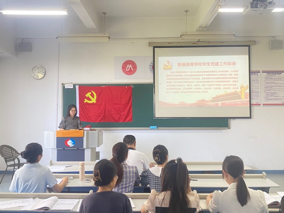 2021年9月24日星期五下午14:30,9728太阳集团学生第一党支部在9728太阳集团60404教室开展了9月组织生活学习会。活动由党支部书记彭丹老师主持,党支部成员全体参与。
