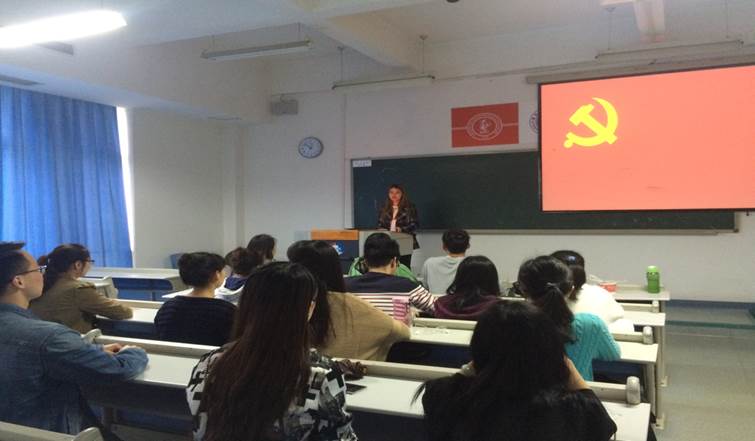 由14级人资班的许倩同学结合ppt给大家展示关于“怎样成为一名合格的中共党员”,并播放视频供大家观看学习。她们首先给大家介绍了关于中国共产党的基本知识,培养和发展学生党员的标准及条件以及培养和发展学生党员的程序。接下来,再就“端正入党动机,以实际行动争取入党”展开了详细的讲说。正确的入党动机是全心全意为人民服务,不惜牺牲个人一切,为实现共产主义奋斗终生。入党,意味着要比群众多吃亏,争取入党就是要为党和人民的利益不怕吃亏;入党,意味着要比群众多挑重担,多做贡献;入党,意味着要比群众多做牺牲,争取入党就要富于革命的自我牺牲精神。以实际行动争取入党:自觉接受党组织的培养教育和考察;以实际行动争取入党,必须持之以恒;争取入党,靠自己的真诚的努力。最后,讲解了规范的学生入党常用文书写方法。