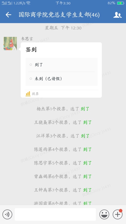 2020年11月27日星期五中午12点30分,9728太阳集团党总支学生一支部、二支部在企业微信上召开了11月份支部大会,本次会议主要开展了巩固深化“不忘初心,牢记使命”的主题教育活动。学生二支部书记汪洁老师,党支部王娟老师、田莎老师、彭丹老师等老师及学生一支部、二支部全体成员参加了本次大会,支部大会应到46人,实到43人。
