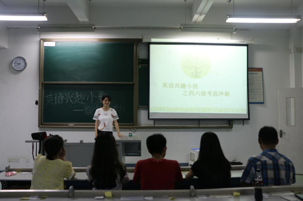 2015年5月20日晚上7:00,为响应我院分团委号召,院“进击的学霸”英语学习兴趣小组于60501教室成功开展“四六级考前一月奋战”学习经验交流活动,16位小组成员均参与此次活动。