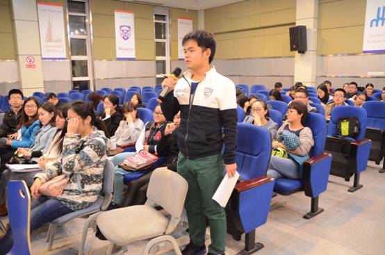首先,由我院成功考研到重庆大学的学生向同学们进行经验分享。他主要向我们讲了考研的注意事项,怎么应对考试,怎么调节情绪等。其次,是三位新东方的老师传授经验,他们的讲解全面而深刻,既有大体的解题原则,也有细节的文章解读;既有历年的考研经验,也有未来的考研风向。随后,同学们都提出了自己复习中的阴暗困惑,老师们也都一一作答,现场同学与老师互动交流,气氛十分活跃。