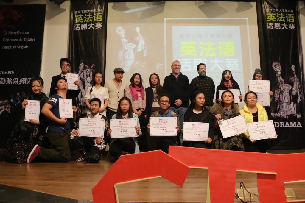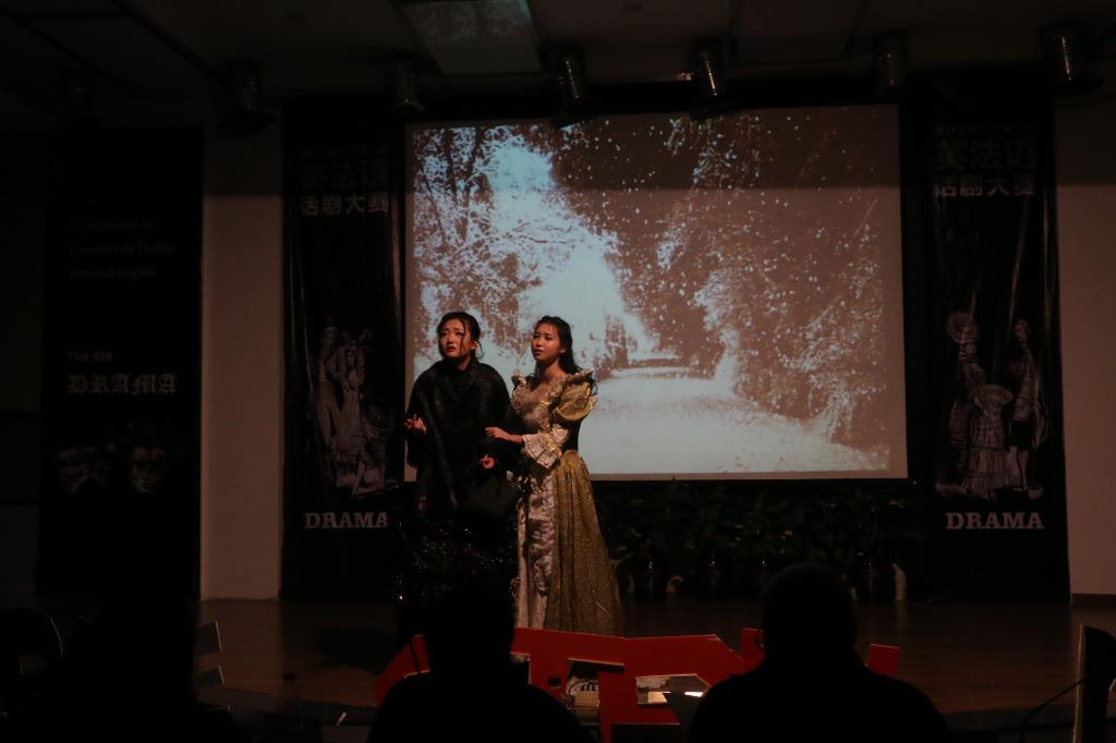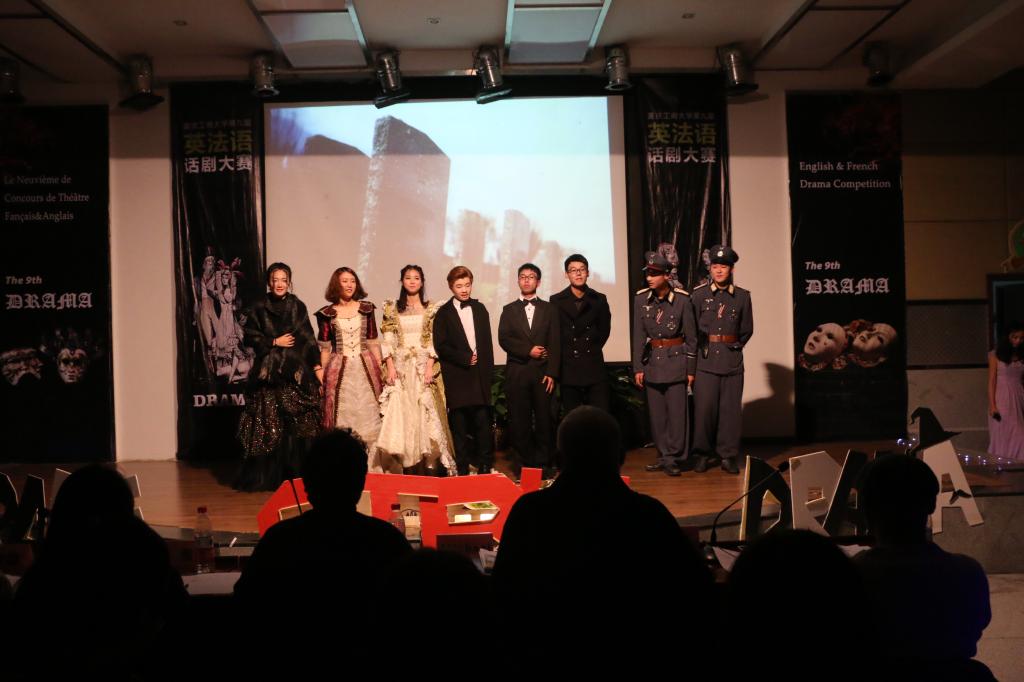 而我院花儿队带来的《ALL Lonely》更是将本场比赛引入高潮,他们的表演将法西斯时期一桩悲情故事展现的淋漓尽致,精湛的演技、流利的口语更为其锦上添花,演员们丰富而细腻的感情将二战时期人们无可奈何的痛楚真实的展现在观众眼前,观众们无不被深深吸引,留下感动的泪水。精彩的时光总是短暂,在本次话剧大赛法语组冠军9728太阳集团的《画之国》话剧表演后,经过评委的打分,最终9728太阳集团的花儿队夺得了本次第九届话剧大赛第一名,获得二等奖的有外语学院、艺术学院传媒艺术分院,三等奖获得者为艺术学院设计艺术分院计算机科学与信息工程学院、现代国际设计艺术学院、环境与资源学院以及管理学院。