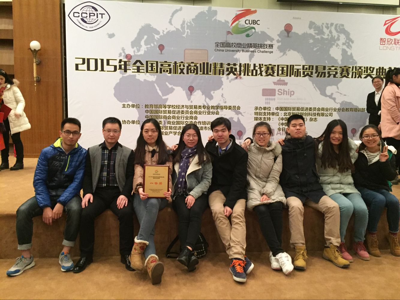 此次赛事为我院首度参加,参赛项目为“圣罗莉亚婚纱公司”,参赛队员包括13级国贸一班王梓涵、叶方舟、原凌宇、秦小东、张严妍、13级法语班姚青芋、14级国贸一班李蓝馨、乔一龙,在专业教师戴林副教授和蒋兴红老师、辅导教师苟焰老师和朱锡斌老师带领下,获得一等奖,并将代表大陆地区赴台湾参加2016年海峡两岸大学生国际贸易模拟竞赛。