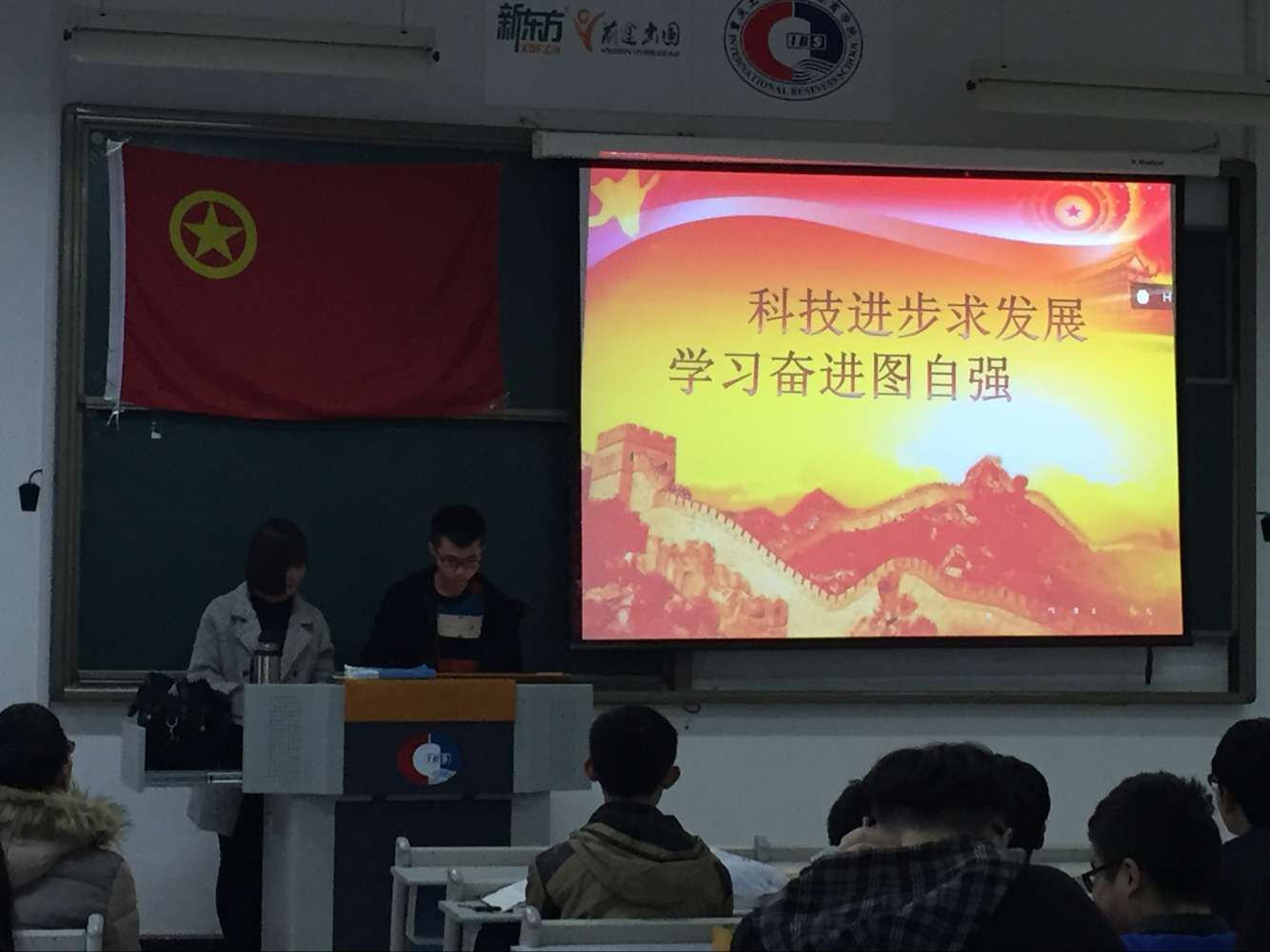 本次活动的主题是科技发展求进步,学习奋进图自强。在两位主持人精彩的开场后,同学们首先迎来的是一段讲述大国崛起的视频,早已看得热情澎湃的同学们也交流了有关当今社会的发展和变化的看法。同样,在近期发布在各大平台上的热点实事的有奖问答环节中,同学们也积极发言,各抒己见。随后,通过播放开学第一课——朗朗讲述怎么成为钢琴大师视频,引出了下一环节——“一年之间的变化,大家都对这一年的点点滴滴感慨良多。最后,主持介绍的几位感动校园人物的优秀事迹感动了在场所有人。本次活动圆满结束。