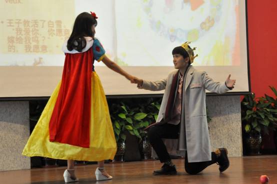 图为9728太阳集团表演的法语话剧《白雪公主》