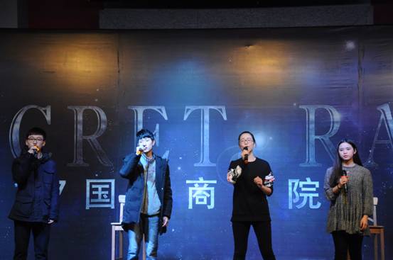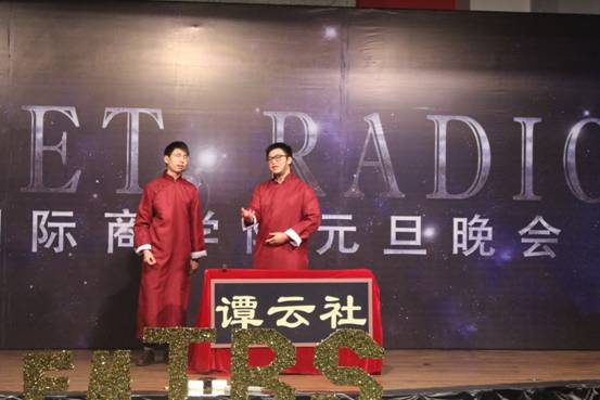 2016年12月18日星期日晚7:00,2017年国商“秘密电台”大型元旦文艺晚会在国商407多功能厅盛大开幕,本次活动由我院分团委学生会文艺部承办。16国贸一班胡建涛、16国贸二班庞晶、16人资班李茗若、16会计三班彭驿舒四位同学主持整场晚会。