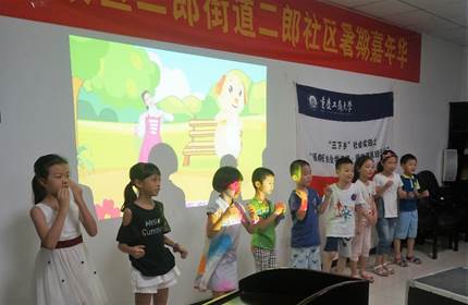通过这几天的授课,9728太阳集团暑期“三下乡”社会实践服务团的志愿者们与二郎社区和同天苑社区的小朋友们在不断交流中,渐渐有了良好的默契。在实践活动第四天,在小朋友们和社区的支持下,“趣味课堂活动”圆满完成。