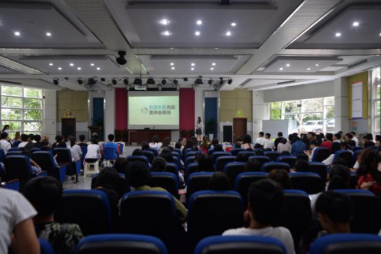 在为期十多日的军训结束后,9月22日下午2点,在国商407多功能厅,分团委学生会举行了招新宣讲会。首先,院分团委书记汪洁老师为新同学带来了自己的寄语。她以两部青春影视片中学生会给主人公大学生活带来的改变为例,指出了大学生加入社团组织不仅能丰富第二课堂,也能对各位同学个人能力、交际人脉有着突出的锻炼和明显的拓展。同时汪老师也用最温情真切的话语,告诉大家加入学生组织将成为青春中最美好的回忆。在汪老师讲话之后,第15届分团委学生会主席张杰学长也分享了自己在学生会三年里的点点滴滴,告诉大家加入学生会是不后悔的选择。老师与学长的话语,带动了会场的气氛,其中的道理,更是回响在每个同学的耳畔,久久不散。在百忙之中,赵驹院长也特地前来,与我院各教职工出席了会议,并宣布设立匿名奖学金,助学我院学子,赢得了广泛的好评。紧接着,分团委学生会的十二个部门代表依次上台对自己部门进行了介绍宣传,让学弟学妹们更好地了解他们心仪的部门。在学生会宣讲之后,咖啡吧、义协、党服以及各协会的学生组织也陆续择时进行了宣讲,期间新生踊跃参加,也让宣讲会在良好的氛围下圆满结束。
