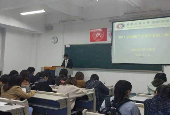 为贯彻共青团中央、教育部《关于加强和改进大学生社团工作的意见》、《重庆市高校学生社团管理暂行办法》和《太阳集团官网tyc9728学生社团管理办法(暂行)》的相关要求,促进我院学生社团更加蓬勃的发展,我院于2017年11月27日下午在60404教室举行2017—2018年第二次学生社团工作会。学院学生社团指导老师朱锡斌出席会议,微爱义工志愿者协会、法语协会、摄影协会全体学生干部参加了会议。