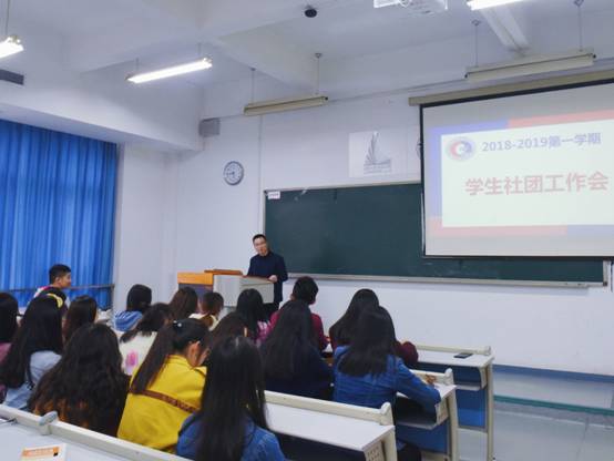为贯彻共青团中央、教育部《关于加强和改进大学生社团工作的意见》、《重庆市高校学生社团管理暂行办法》和《太阳集团官网tyc9728学生社团管理办法(试行)》的相关要求,提高我院学生的综合素质,促进我院学生社团更加蓬勃的发展,我院于2018年10月29日下午5:30在9728太阳集团06403召开2018年——2019年第一次学生社团工作会。学院学生社团指导老师朱锡斌出席会议,微爱义工志愿者协会、法语协会、摄影协会全体学生干部参加了会议。