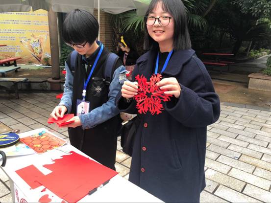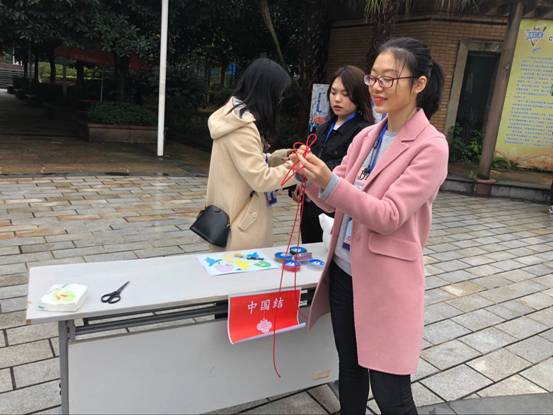 中国结是吉祥和幸福的代表词,一条条幸福的红绳、一道道用心编织的美丽绳结,都承载着青少年们的祝福和期盼。为了培养大学生的创新精神与动手能力,然后为同学们讲授中国结的寓意和制作流程、技巧注意事项等,随后一边制作一边讲解:先是打金刚结,然后盘线,用珍珠针固定,结成一个饼状,最后收线。同学们在一旁观察着打结的方法,一边动起手来制作,专注而认真。整个过程,青少年们一边制作一边与工作人员进行沟通,气氛都很热烈。经过20多分钟的创作,一个个鲜红、喜庆的“中国结”就在同学们灵巧的小手中诞生了。