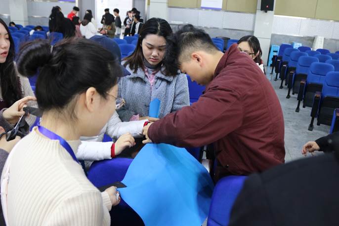 本次活动共分为两批。第一批游戏中参赛队员在活动之前就被分好,并根据主持人的提示进行第一个游戏“复方汤剂”,参赛队员们充分发挥了自己的动手能力,在一片欢声笑语中,第四组第一个完成了魔法装备的制作并上台拍照完成了游戏。紧接着进行“我是找球手”游戏,先完成的同学们争先恐后跑出教室寻找线索,为了争分夺秒,小组内的同学都积极配合协作,争取得到更多线索。最后在“霍格沃兹开学宴”中结束第一批的游戏。在这个活动过程中,我们看到了同学们热情洋溢的笑脸,感受到正值青春年华的他们身上那一腔热血。