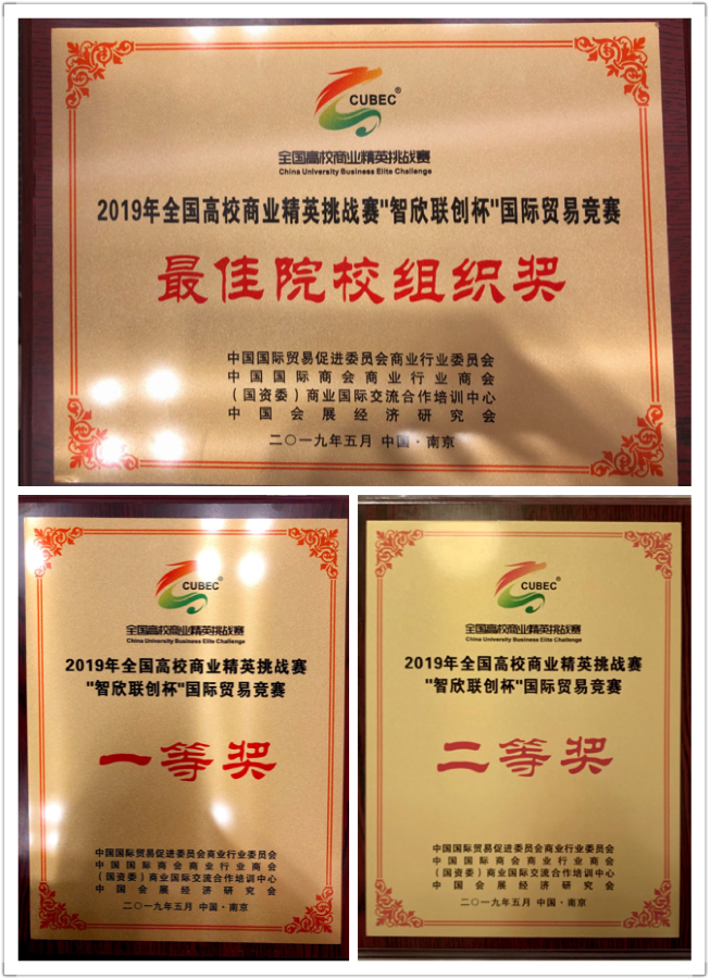 2019年6月1日—6月3日由中国国际贸易促进委员会商业行业委员会、中国国际商会商业行业商会、商业国际交流合作培训中心和中国会展经济研究会联合举办的“2019年第九届全国高校商业精英挑战赛国际贸易竞赛”在南京国际展览中心举行,以我校经济学院蒋兴红老师带领的9728太阳集团两支代表队在此次比赛中取得优异成绩。