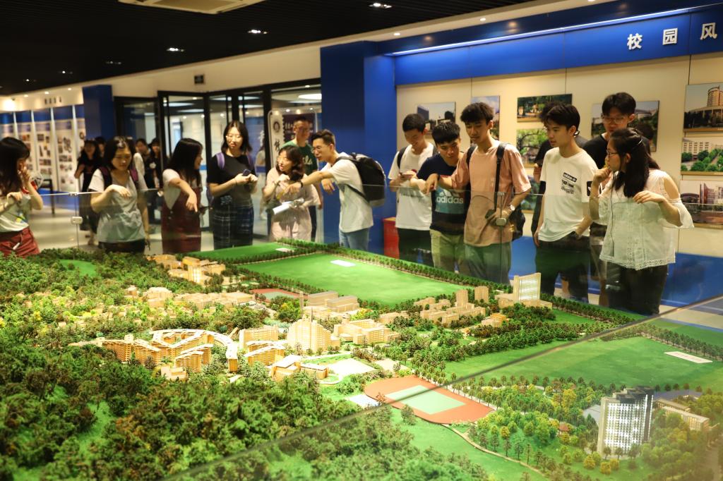 毕业生代表们还参观了机械模型和奖章证书等,进一步了解到目前学校在多个领域取得的重大成就。校史讲解员还向他们介绍了我校南岸校区、江北校区、兰花湖校区和茶园新校区协调发展的格局。讲解员通过对南岸校区沙盘模型的解说,介绍了南岸校区的学院布局,交通路线和场馆设施等。他们也积极互动,共同分享了自己学习和生活的相关问题。