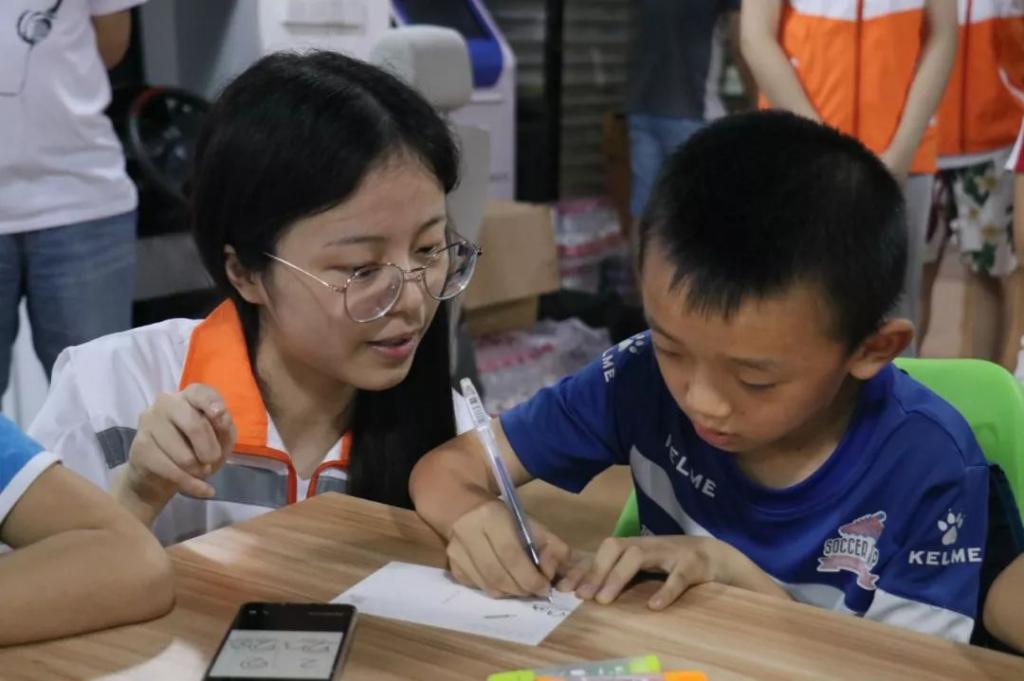 第一堂课是由授课人员龚禧和秦榛带来的“寄明信片与爱”,本堂课旨在培养小朋友的创新能力以及引导小朋友们懂得感恩。志愿者通过PPT展示以及现场示范这两种方式进行教学。志愿者们通过幻灯片的展示让小朋友们对明信片有进一步的了解,接着通过教小朋友用数字作画,以此激发他们的想象力与创造力。孩子们都表现出极大的兴趣,创作出了一张又一张独一无二的明信片。每一张色彩斑斓的明信片,都象征着孩子们纯真美好的心灵。