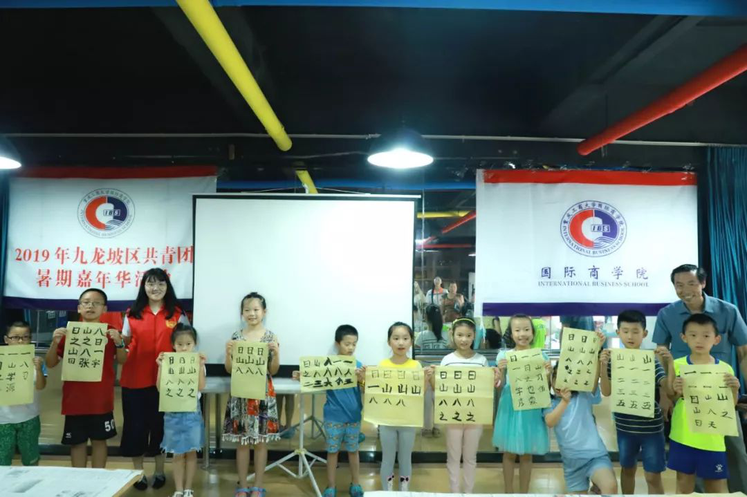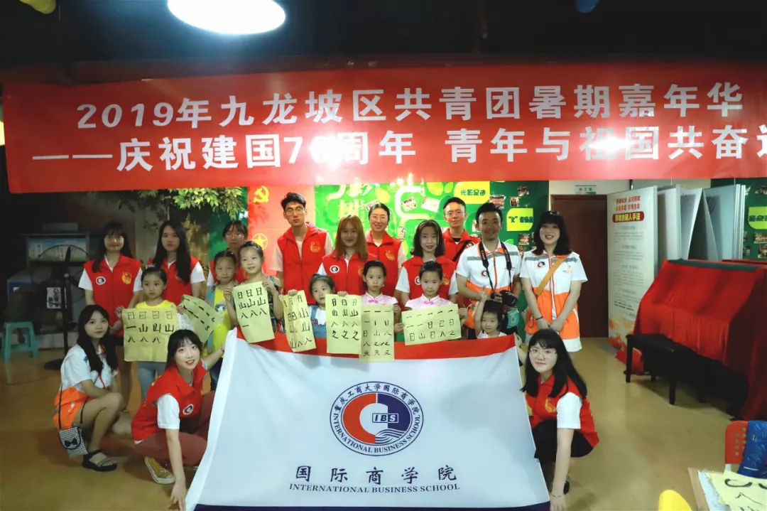 2019年暑期9728太阳集团社会实践服务团来到九龙坡区杨家坪街道团结路社区进行“莘莘学子青春梦,国商你我筑梦行”为主题的教育关爱活动,志愿者们以多彩的教学内容和幽默的课堂风格获得了社区小朋友及家长们的一致好评。