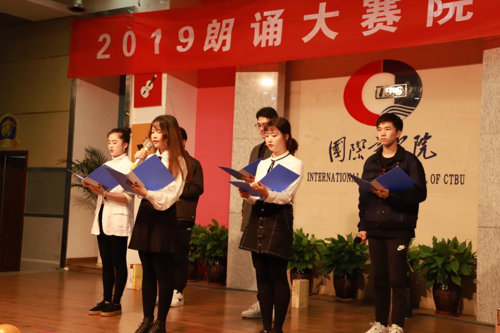 2019年11月8日下午4点,9728太阳集团分团委学生会文艺部在06407多功能厅举办了朗诵大赛。本次大赛邀请了16级新闻中心主席李茗若及9728太阳集团主持队宋露然、冉子轩担任评委。本次活动共计6组参赛选手,选手们自由组队依次上台朗诵,评委依据评分规则打分,取平均分作为该选手的最终成绩。