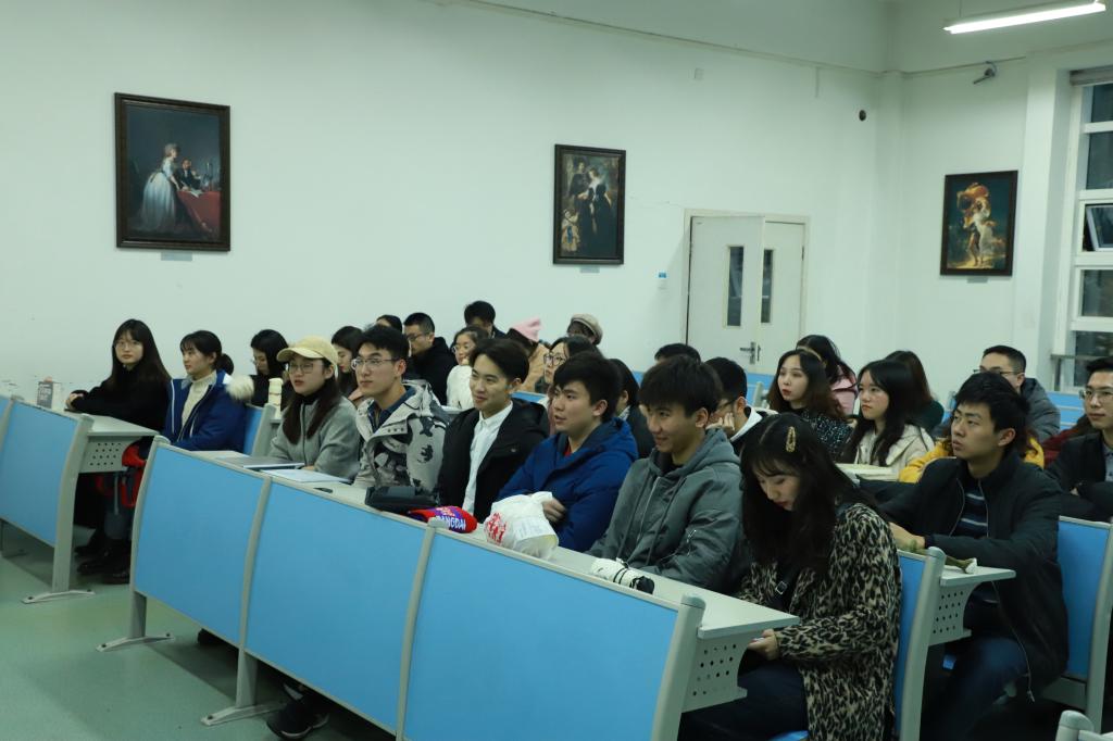 图为:与会人员认真听老师讲话