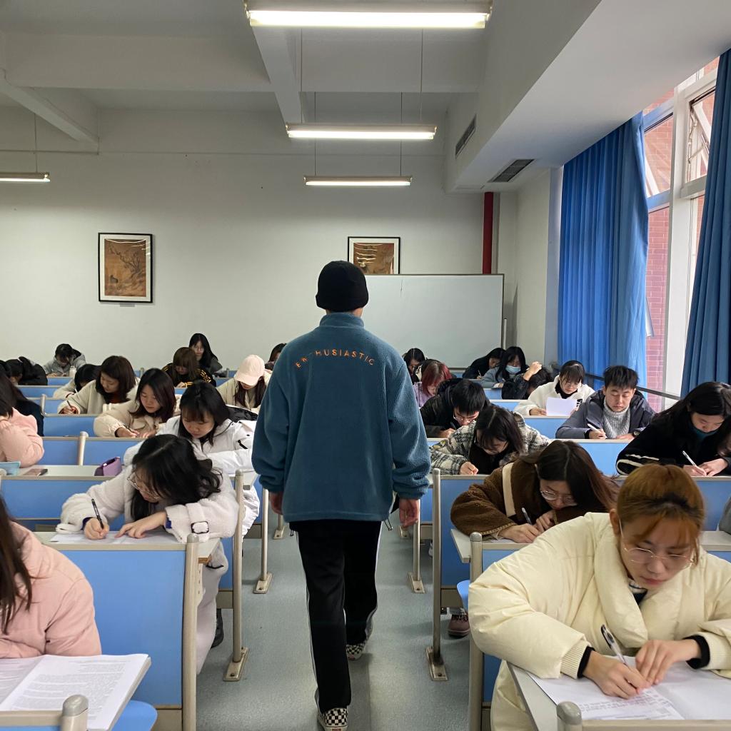 12月5日上午8:30,各位报名参加模拟四六级考试的同学,陆续到达501,502考场,进行签到,在此同时,由于参加考试的同学多为20级的新同学,不熟悉考试流程,故监考同学万文杰在讲台上详细介绍了英语四级考试时间安排,以及考试流程。8:50-9:00,监考同学播放听力试音部分,并且讲解考试规则,不允许使用手机,不得无故出教室。9:00-11:20整场考试,同学们细心阅卷,认真作答,考试氛围良好,没有同学交头接耳、偷看他人卷面等违规行为。考试结束,同学们准时交卷,并对此次考试作了高度评价。