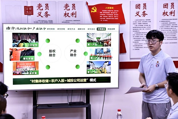 (实践团成员进行团学活动分享 摄影 李鑫)