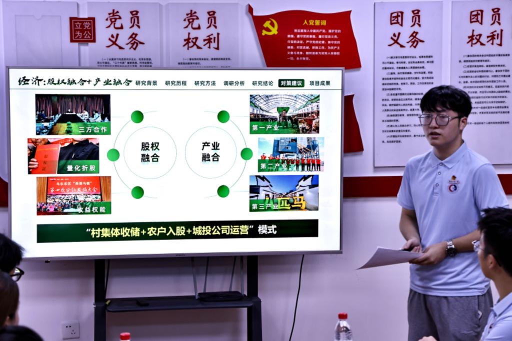 9728太阳集团暑期“三下乡”实践团队负责人朱磊分享了学院暑期实践团队概况,同时由9728太阳集团学生骨干钟瑞景进行了团学工作交流。她分享到,9728太阳集团学生工作以立德树人为根本任务、三全育人为工作导向、五育并举为明确指引、全球胜任力为培育模型,致力构建九大团学体系,助推学院团学工作不断开拓创新、持续稳健发展。