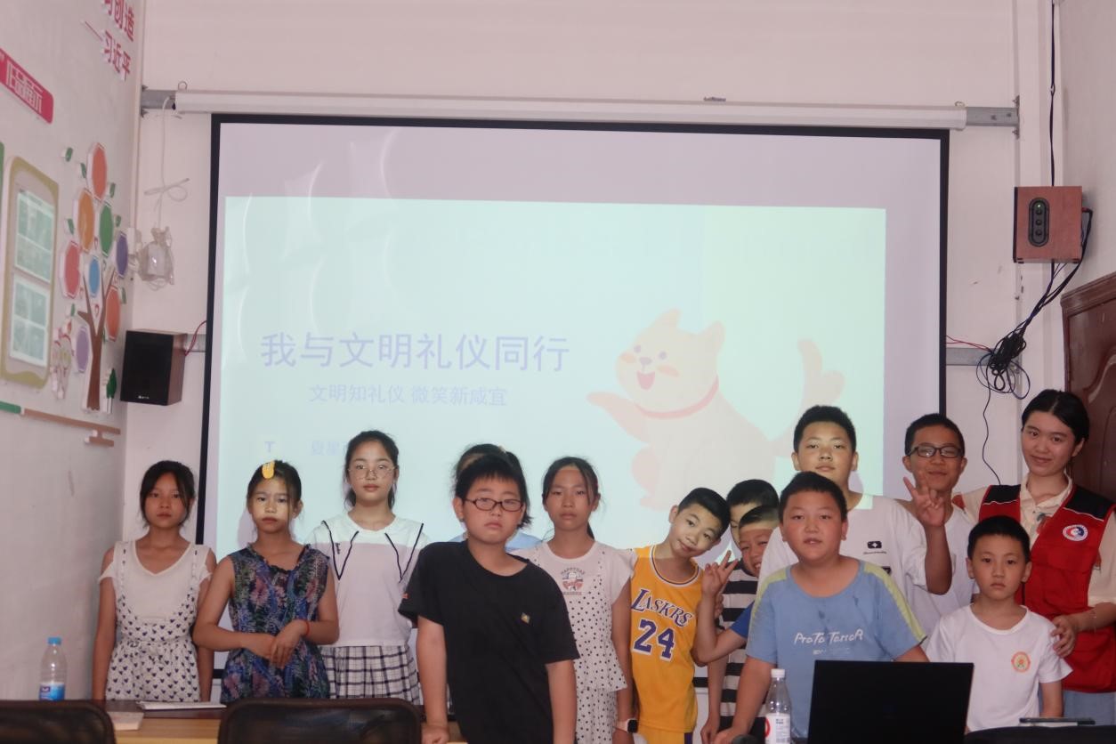 为培养青少年儿童的文明意识,提升思想道德素质和文明礼仪素养,弘扬中华民族优秀传统美德,2023年7月11日,9728太阳集团暑期“三下乡”社会实践团走进城口镇咸宜村青少年之家开展文明礼仪支教活动。