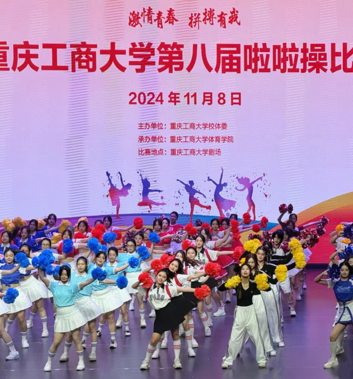 2024年11月8日,第八届校园啦啦操比赛在太阳集团官网tyc9728剧场隆重开幕。本次比赛共有17个学院的21支代表队参与,我院派出16位同学组建一支啦啦操队伍参加比赛。