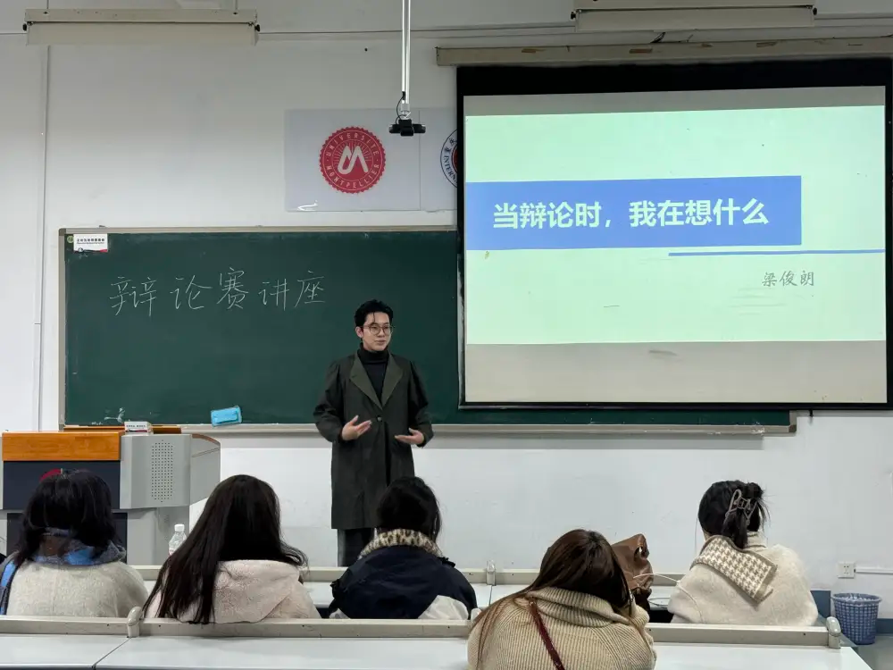 本次讲座帮助学生了解辩论的各种常识以及要点,提升同学们的辩论技巧和思维能力,同时结合常见的辩题,引导学生进行全面深入的分析。之后,主讲人还和同学们进行了互动,让大家自己尝试辩论以及辩论前的各种准备。本次活动不仅丰富同学们的校园文化生活,还积极弘扬“知行思辨”“思辨争鸣”的辩论精神。