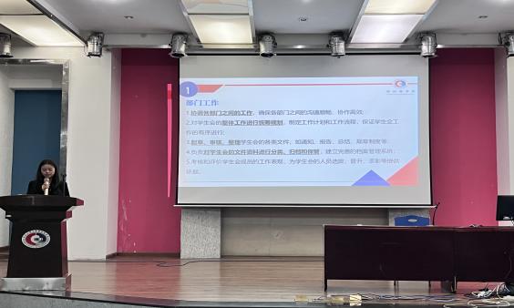 大会伊始,22级主席团代表登台致辞,大会回顾了过去一年学生组织的成长与收获,也向在场新生表达了对未来工作的期待。随后,各部门成员依次上台,通过工作总结梳理过往工作成果,以未来展望明确发展方向,充分展现了各部门的职责特色与团队风貌。
