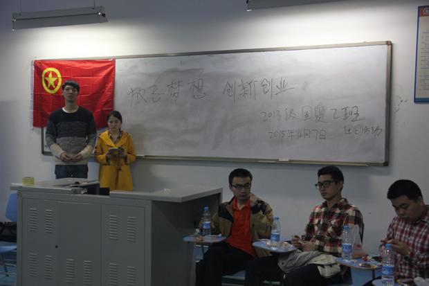 2015年4月7日14:00,在我院分团委的指导下,院2013级国贸2班团支部组织开展了学院“321”工程之“放飞梦想,创新创业”团日活动,该班全体同学参与了本次活动。