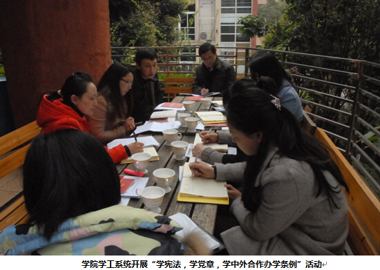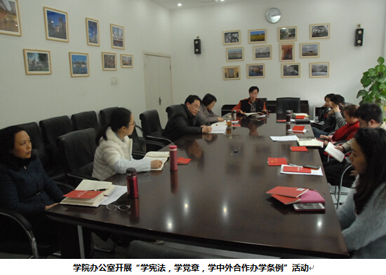 新学期,新气象。3月13日下午,9728太阳集团的全体辅导员结合学生思想政治工作就学习《宪法》、党章、《中外合作办学条例》等的心得体会展开了热烈的讨论。同时,学院各教研室、行政部门也举行了同样的学习讨论会。