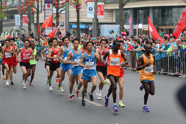 一声枪响后马拉松比赛正式开始。参赛运动员们都怀着激动的心情向前奔跑,热情的观众不断地为他们加油助威,我院义协志愿者亦以“奔跑南滨,文明南岸”的口号为南岸参赛者呐喊加油。本次重庆国际马拉松比赛在满场观众的欢呼与掌声中结束。其中,男子组前三名分别是肯尼亚选手Michael kiprop Tiony成绩2:13:34、埃塞俄比亚选手Tola Bane Edea和肯尼亚选手Marius Kimutai,中国选手哈斯木汗以2:14:42荣居第五。女子组中,中国选手丁常琴以2:26:54的佳绩摘得桂冠,另一位中国选手何引丽获得亚军,季军获得者为肯尼亚选手Agness Jeruto Barsosio。