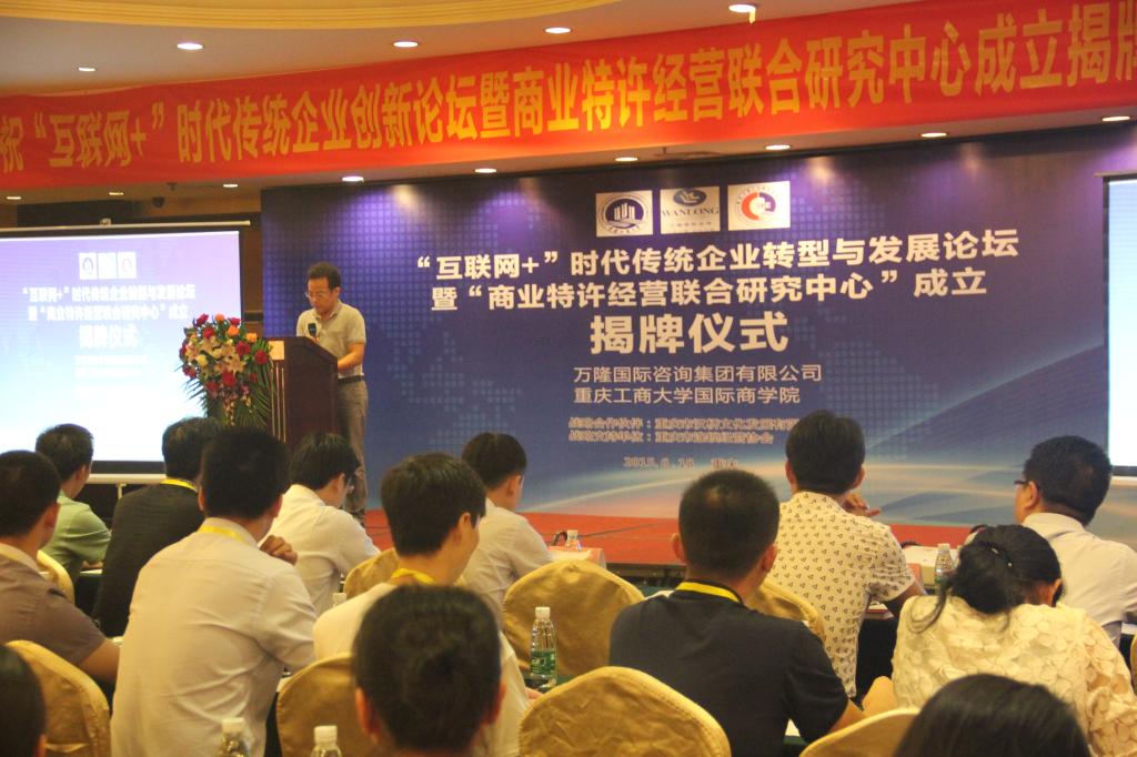 2015年6月18日下午,学院党总支副书记黄谦、副院长李大鹏代表学院参加由万隆国际咨询集团有限公司与9728太阳集团联合承办的“互联网+时代传统企业转型发展论坛暨‘商业特许经营联合研究中心’成立揭牌仪式”,出席本次仪式的还有万隆国际咨询集团有限公司执行总裁徐欣然先生、副总裁徐纯久先生,北京对外贸易大学代表及相关企业家代表等近200人。