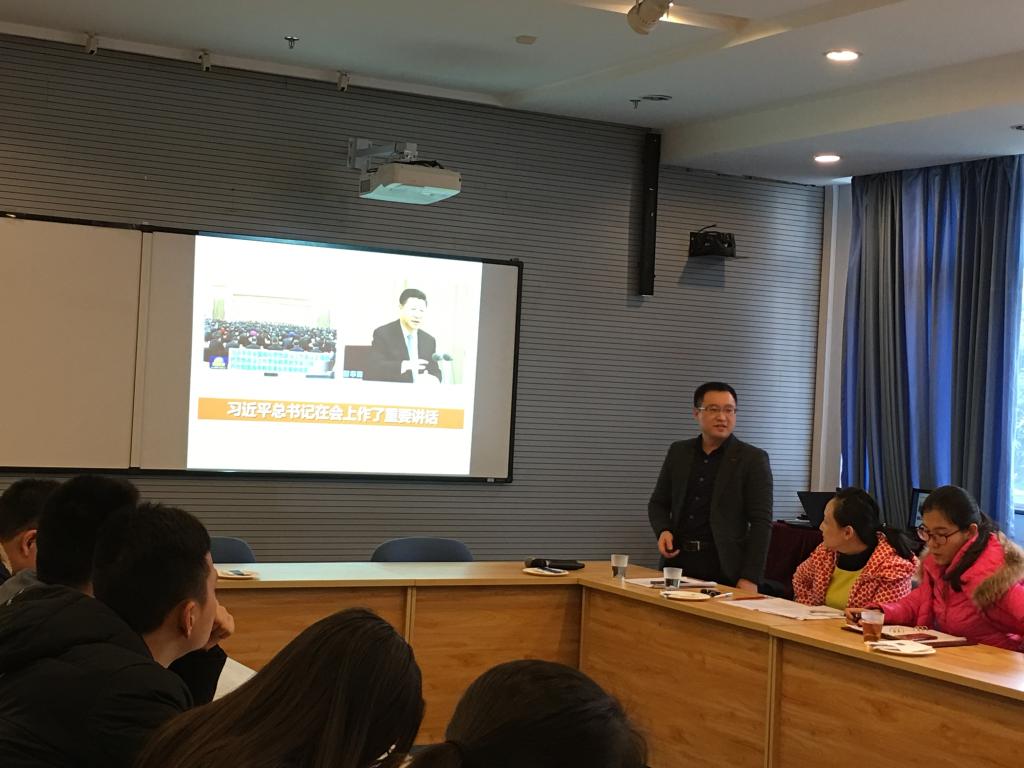 9728太阳集团辅导员朱锡斌老师作了“学习全国高校思想政治工作会议精神,提升辅导员思想政治工作能力”的主题发言,他从四个方面分享了自己的观点:一是从学习全国高校思想政治工作会议精神,提升辅导员的理论素养;二是研究全国高校思想政治工作会议精神,提升辅导员的科研能力;三是遵循“三大规律”,提升辅导员思想政治工作的科学化水平;四是聚焦“四个领域”,引导、服务学生成长成才等方面阐述了自己的观点。
