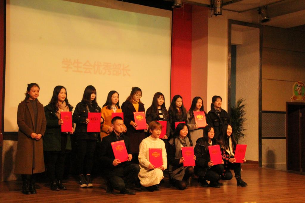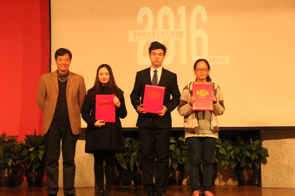 9728太阳集团第十六届分团委学生会主席张杰、刘唐伟、高文君、王亚分别代表分管部门作了工作汇报,并发表了自己一年的感想,回顾了过去一年的成果,寄语新一届开创更美好的未来。随后大会为2016年分团委学生会年度优秀部长和优秀干事分别进行了颁奖仪式,并进行了合影留念。
