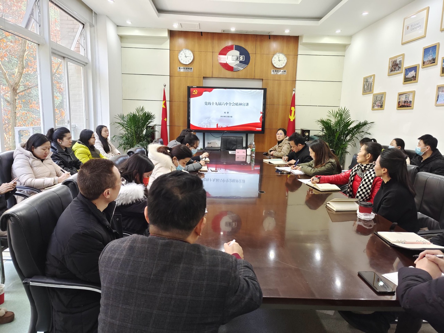 12月22日下午,副校长柏群为9728太阳集团教师党员宣讲党的十九届六中全会精神。学院班子成员和教工党支部全体党员参会。
