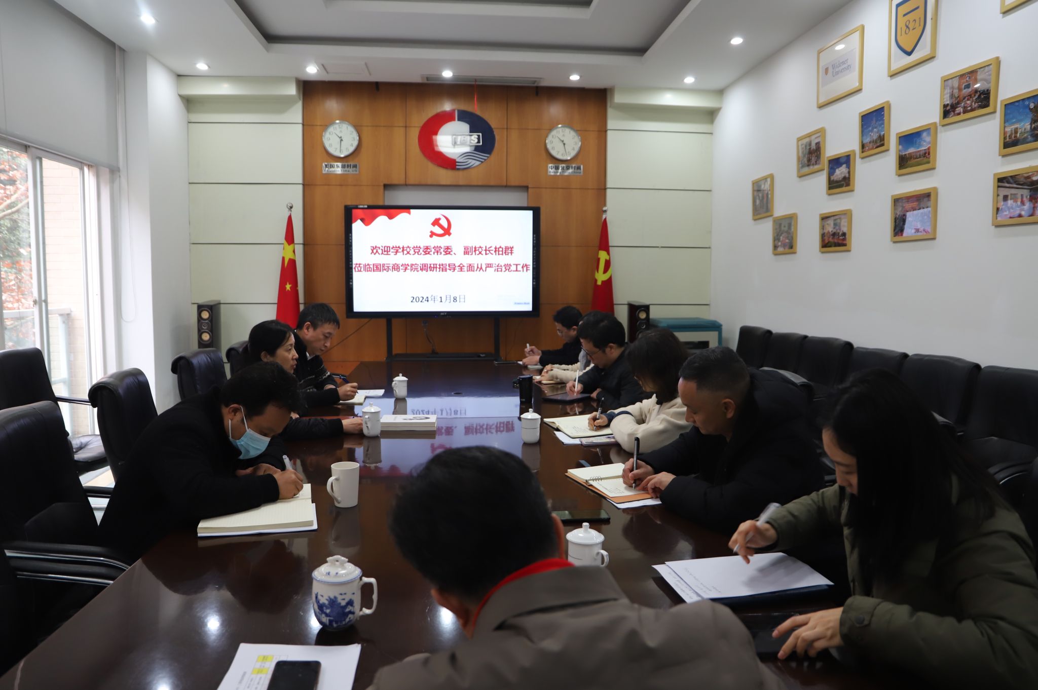 2024年1月8日上午,学校党委常委、副校长柏群到学院调研指导全面从严治党工作。学院班子全体成员、专职组织员及相关部门负责人参加了调研座谈。