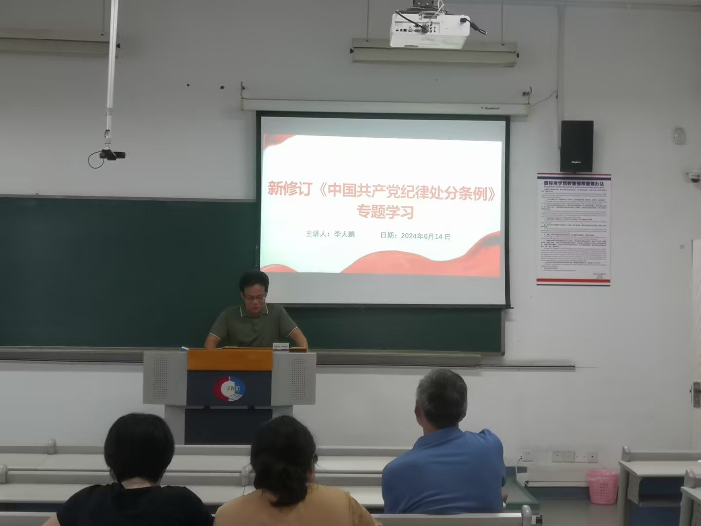 6月14日下午13:00,9728太阳集团教工党支部在学院60400教室开展了党纪学习教育主题党日活动,活动由教工党支部书记陈京晶主持,教工支部全体党员参加会议。
