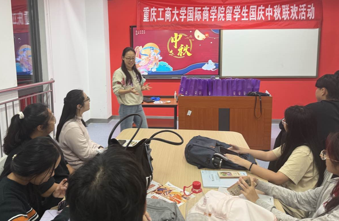 为坚持贯彻落实习近平新时代中国特色社会主义思想,加强中外文化交流沟通,10 月 06 日晚我院教师带领全体来华留学生,在十二教 502 教室举办 “月满中秋,情系家国” 主题文化交流活动。活动中,师生通过 “中秋知识抢答” 环节互动,让留学生深入了解中秋传说与传统习俗,近距离感受中华优秀传统文化魅力,同时在欢聚氛围中增进彼此交流。活动尾声,学院为留学生送上中秋祝福,传递节日关怀与温暖。