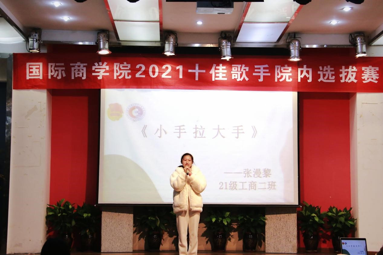 最后的决赛环节,向芸萱,周佳宜,张漫黎,付瑶,陈思岐,彭雨佳,邹佳妹,杨润,姜大伟,胡伟豪,张倬瑞十位同学用精彩的表现为现场的观众带来了一场精彩的视听盛宴,他们顶住压力,发挥出了自己最好的状态,收获了经久不息的掌声。最终,进入决赛环节的十强选手荣获本届十佳歌手的称号。其中,来自20级金融二班的向芸萱同学,21级中法二班的周佳宜同学,21级工商二班的张漫黎同学分别斩获一,二,三等奖。