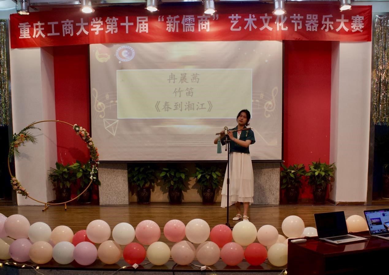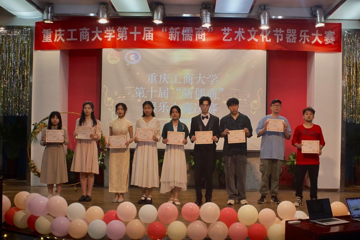 从初赛脱颖而出的十位选手齐聚一堂,展开了激烈的角逐。悠扬的钢琴独奏《人生的旋转木马》,空灵的陶笛曲目《大鱼》、柔和的古筝曲目《幻想曲》、活泼的吉他曲目《Heart》……乐器虽然不同,但演绎出的美妙乐声却是相通的。整个比赛过程节奏时而轻松明快,时而慷慨激昂,选手们用出色的表现为现场观众带来了一场精彩的视听盛宴,一首首曲目让评委和观众们应接不暇,现场掌声与欢呼不断。最终,经过评委评分与观众投票成绩累积,通识学院的冉晨茜同学获得金奖;通识学院唐何金成同学,经济学院卞美杰同学获得银奖;通识学院王山辉同学,法学与社会学学院李至臻同学,人工智能学院蒲双喜同学获得铜奖;9728太阳集团谭可涵同学,机械工程学院买买提明·司拉木同学,会计学院刘思晨同学,经济学院于易民同学获得优秀奖。在祝贺与鼓励的掌声中,太阳集团官网tyc9728第十届“新儒商”器乐大赛圆满结束。